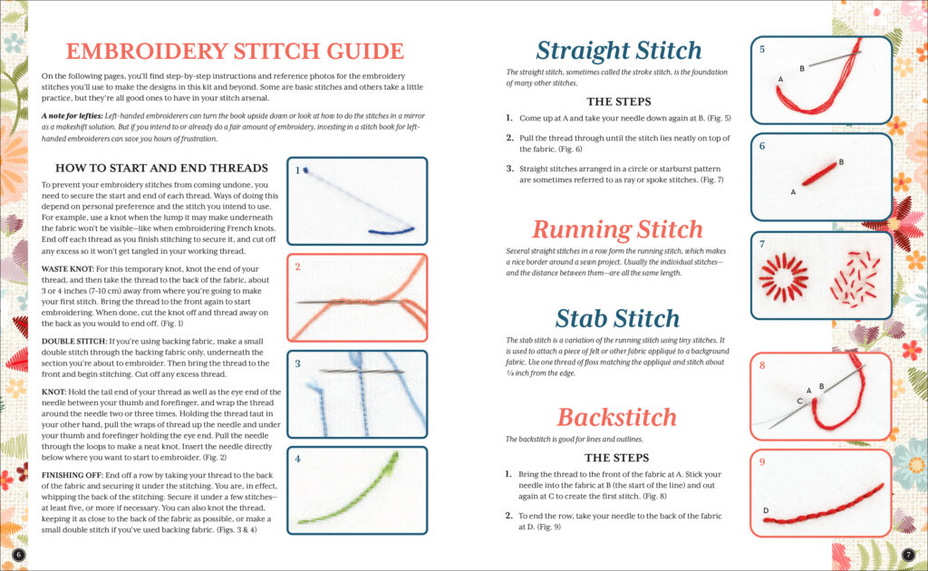 Ray also recommends starting with a kit that includes everything you need to create your craft project: needle, hoop, fabric, floss, and step-by-step instructional guide.